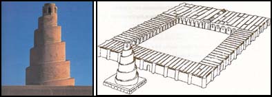 أما ما يميز هذا المسجد الكبير فهو المئذنة التي لم يسبق لها مثيل في العمارة المسجدية حيث تشكل حلزونا متصاعدا لخمس مرات انتهاء بمصطبة تعلو عن الارض خمسين مترا، وتدور الممرات الحلزونية المتصاعدة بعكس اتجاه عقارب الساعة، وهو مما يماثل الحركة في الطواف، ويعتقد ان لهذه الحركة الدورانية بعكس اتجاه عقارب الساعة دلالات رمزية في تكاملية كونية، حيث ان الالكترونات داخل الذرات تدور في مدارات بعكس عقارب الساعة وكذا الارض حول الشمس. مما يحوي دلالات على تكاملية العمارة والفكر المعماري المسلم مع الدلالات الكونية المحيطة والاستجابة لها. وقد تم بناء مسجد ذي مئذنة ملوية شبيهة من قبل المتوكل ايضا في وقت لاحق هو مسجد ابي دلف بسامراء، غير ان نسب المسجد والمئذنة كانت أصغر وبنيت بشكل مختلف، وفي عهد المماليك تمت الاستعارة لهذه المئذنة المتميزة لدى بناء مسجد ابن طولون بالقاهرة حيث تحاكي المئذنة وكذا تكوين المسجد بشكل عام هذا المسجد الجامع الكبير في سامراء.