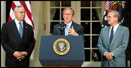 بداية من المعروف ان وصول شارون الى رئاسة الحكومة وهو اليمين المتطرف تزامن تقريبا مع وصول بوش الجمهوري للحكم. وحتى ان اعتبرنا هذا محض صدفة فإن بوش منذ بداية حكمه بدا متعاطفا ومتفهما لما يفعله شارون، وقضى الأشهر الأولى من ولايته غير عابىء بما يجري في الشرق الاوسط، وكان أول ما فعله انه نفض يديه من أي اتفاق تم التوصل اليه في عهد سلفه بيل كلينتون.