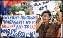 وكان الرئيس الامريكي جورج بوش قد حذر من أن الحرب التي تشنها حكومته على الارهاب قد تتطلب كثيرا اتخاذ عمل عسكري «إجهاضي»، وحذر جينجونا من أن مثل هذه السياسة يمكن أن ترسي مثلا سيئا لبلدان أخرى، مثل الخصمين النوويين الهند وباكستان، يذكر أن جينجونا أجبر على الاستقالة من منصب وزير الخارجية، الذي كان يشغله بجانب منصبه كنائب للرئيسة، الشهر الماضي لاختلافه مع الرئيسة جلوريا ماكاباجا لأرويو حول نشر قوات أمريكية في جنوب الفلبين في إطار الحملة الدولية ضد الارهاب، وتساءل جينجونا «من يحدد من هم الارهابيون؟ ومن هم المقاتلون من أجل الحرية في أرض جديدة؟ ألم يحارب الامريكيون البريطانيين للحصول على استقلالهم؟».