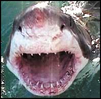 وقالت لي: لم يتعرضوا لأي خطر للقضم من أسماك القرش، وأضافت ان أسماك القرش تتغذى بشكل جيد ومعتادة على الناس في حوضها المائي لان غواصين ينزلون اليها باستمرار.