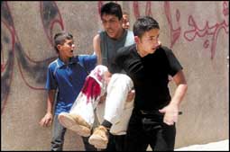 وفي تطور آخر، أصيب ثمانية فلسطينيين امس في قصف إسرائيلي بالرشاشات الثقيلة وقذائف الدبابات للمخيم الغربي للاجئين قرب خانيونس جنوبي قطاع غزة، وفق المصادر الفلسطينية.