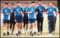 هذا وقد حضر تمرين يوم أمس بملابسه العادية الكابتن يوسف الثنيان إلا أنه لم يتمرن، وقد أكد «للجزيرة» انه حضر لكي يطلب اجازة، وقد اجتمع الثنيان مع أمين عام نادي الهلال فواز المسعد وبعد الاجتماع عاد الثنيان وقال «للجزيرة» من جديد انه سيبدأ التمارين من اليوم الأحد وقد اوضح فواز المسعد ان الثنيان لم يطلب إجازة!! وواصل أمين عام نادي الهلال استغرابه ونفيه لخبر اجتماعه بسامي الجابر وقال: لم اجتمع به ولم اتحدث معه إطلاقاً.. وعلى صعيد تمارين الهلال فقد منحت إدارة الكرة في النادي وبتوجيه من أمين عام النادي فواز المسعد وبعد مشاورات مع الجهاز الفني الثلاثي نواف التمياط وعبدالله سليمان وعمر الغامدي إجازات لم تحدد مدتها بعد، وذلك للإرهاق الذي تعرض له هذا الثلاثي خلال منافسات الموسم الماضي .من جهة أخرى يحضر نهاية الأسبوع الجاري مدافع الفريق أحمد الدوخي من فرنسا ليكمل علاجه في نادي الهلال، وكان أبرز اللاعبين الذين أدوا تمرين يوم أمس محمد الدعيع وعبدالله الشريدة وأحمد خليل وحسين علي وغيرهم.