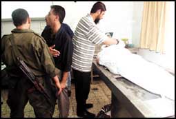 وزعم المتحدث ان كلا من الفلسطينيين اللذين عثر الجيش على جثتيهما كان يرتدي بزة عسكرية إسرائيلية وسترة واقية من الرصاص، وأضاف انهما كانا مسلحين برشاشي كلاشينكوف وقنابل يدوية.وأكد فلسطينيون يقيمون في المنطقة لوكالة فرانس برس وقوع تبادل لاطلاق النار موضحين ان دبابات اسرائيلية أطلقت قذائف أيضاً.