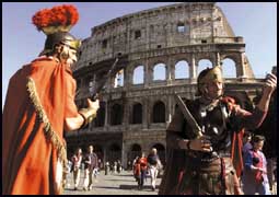لن يجابه المصارعون الرومان الاسود والنمور.. فان خصمهم الجديد هو سلطات روما التي هاجمتهم يوم الاثنين بعد شكوى السياح من اسعارهم الباهظة وازيائهم الرثة، وتعهد مجلس مدينة روما بالتصدي للمصارعين الذين يتجمعون حول مبنى الكوليسيوم في محاولة لاطلاع السياح على لمحة من تاريخ روما عام 80 قبل الميلاد عندما افتتح الكوليسيوم اشهر معالم المدينة بمهرجان على مدى مئة يوم بالقتال الشرس بين المصارعين.