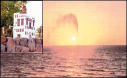 تظهر شاهقة ويمكن رؤيتها من أي مكان من جدة، ينبع رذاذ الماء منها كالبخور في ليلة عرس العروس جميلة حالمة من قاعدة على هيئة مبخرة مهداة من خادم الحرمين الشريفين لمدينة جدة، يصل ارتفاع الماء منها الى «120» مترا لتصبح اعلى نافورة في العالم، وقد تمت زيادة ارتفاع المياه منها بزيادة ضخ المياه فيها. وقد اصبحت هذه النافورة معلماً أساسياً من شواهد جدة، فلا يمكن ان تغفلها العين وهي واقعة في قلب البحر، تنير وتطلق رذاذها المتلون بألوان الضوء لتزف بها عروس البحر الاحمر كل ليلة.