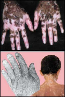وتضيف: يصيب البهاق جميع الأجناس وتبدو الإصابة متساوية عند الجنسين، ويظهر البهاق في 50% من المرضى قبل عمر «10» سنوات ولكن قد يبدأ في أي سن من الطفولة وحتى الشيخوخة. وأعلى نسبة إصابة تكون بين عمر «10 30» عاماً.