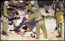 استشهد شاب وشابة فلسطينيان في مدينتي جنين ونابلس صباح أمس في بداية حملة عسكرية اسرائيلية عدوانية على الشعب الفلسطيني في أعقاب عمليتي الخليل مساء الجمعة اللتين أوقعتا تسعة قتلى بين الجنود الاسرائيليين بينهم ضابط برتبة مقدم إلى جانب ثلاثة من المستوطنين.