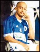 آخر اللاعبين وليس بآخر فيما يبدو سقوطا في حفرة (الصليبي) النجم الخلوق والمدافع الهلالي تركي الصويلح في مباراة فريقه الثالثة في الدوري امام القادسية.
