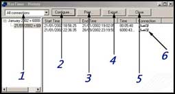 بعد أن تقوم بتحميل البرنامج من خلال موقعه على شبكة الإنترنت وتقوم بتثبيته وتنصيبه في جهازك فإن البرنامج سيعمل تلقائيا في كل مرة تقوم بالاتصال بالإنترنت حيث يمكنك الاطلاع على معلومات كافة الاتصالات التي قمت بها سابقا من خلال اشتراك معين أو كافة أنواع شبكة الاتصال الهاتفي التي قمت بإعدادها سابقا من خلال الواجهة الرئيسية للبرنامج ضمن الخيار رقم ( 6 ) ولتحديد ما يناسبك من طريقة عرض المحفوظات وتاريخ الاتصال والأوقات فمن خلال (Configure ) وهوالخيار رقم ( 2 ) ولطباعة كافة المعلومات عن الاتصال فمن خلال الخيار (Print) وهو الخيار رقم (3) ولتصدير هذه المعلومات كورقة عمل باستخدام برنامج مايكروسوفت اكسل (Microsoft Excel ) فمن خلال (Export ) وهو الخيار رقم (4 ).