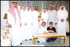 وقام الاستاذ فارس الخضيري باهداء كأس بطولة اندية سدير لكرة القدم والتي حققها الفريق الاول هذا الموسم ضمن بطولات اندية سدير التي حققها النادي «اولى، شباب، ناشئين» تقديراً من النادي للشيخ سعد وابنيه عضوي شرف النادي الشيخ فهد والشيخ محمد نظير دعمهما المتواصل.. هذا وكعادته في دعم النادي قدم الشيخ سعد المعجل خمسين الف ريال دعماً لنشاطات النادي ومشاركاته الحالية كما قدم الشيخ عبدالمحسن بن حمد المنقور وكيل الحرس الوطني بالشرقية سابقاً عضو شرف النادي مبلغ عشرة الاف ريال وذلك اثناء استقباله للاستاذ الخضيري والعريج في الدمام.