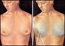 يقوم جراح التجميل بعمل شق جراحي حول منطقة حلمة الصدر او تحت منطقة اليد وذلك كي لا تظهر علامات اجراء هذه الجراحة. ومن خلال هذا الشق الجراحي يقوم الجراح باستئصال الغدد الدهنية الزائدة، والدهون والجلد من المنطقة حول الحلمة ومن حول الصدر ومن عمق الصدر ايضا.وفي حالة ازالة كميات كبيرة من الدهون فان الطبيب قد يعمل على جعل الشق الجراحي اكبر قليلا.