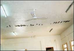فوجئ عدد من المصلين في جامع ابن عدوان بحي السعادة بالسلي بسقوط الطبقة العلوية للسقف مما آثار الرعب فيهم.