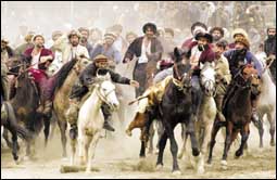 فرسان أفغان يلعبون (البوزكاشي) وهي لعبة يمارسها الأفغان منذ مئات السنين، يتنافس الفرسان على الاحتفاظ بخروف مذبوح ومحاولة نقله إلى هدف معين في الملعب.
