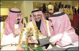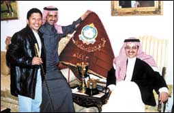 * الأمير فيصل بن خالد ظل وحتى ساعة متأخرة من مساء البارحة في عرين الصقر لمح البصر بالجنادرية واستقبال المهنئين والمباركين بفوز الأحمراني بكأس أبي تركي.........