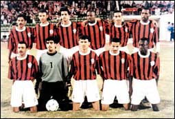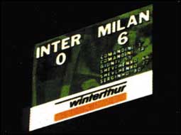 صورة للساعة الرئيسية لملعب جوسيبي مييازا وتشير النتيجة لتقدم نادي الميلان على غريمه نادي الانتر بستة أهداف في مباراة ديربي مدينة ميلانو أقيمت المباراة.........