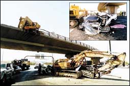 حطمت حاجز الكوبري سقوط حفار على سيارة ووفاة قائدها