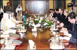 انتهى الاجتماع الذي عقده الحلفاء الثلاثة الرئيس الأمريكي جورج بوش ورئيسا وزراء بريطانيا توني بلير واسبانيا خوسيه ماريا اثنار في جزر اسوريس « الأزور ».........