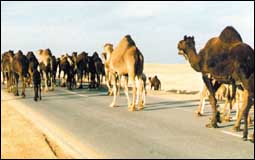 في تحدٍ سافر وفي وضح النهار ترك صاحب هذا القطيع من الجمال قطيعه يسرح ويمرح بالقرب من هذا الطريق السريع بل لم يكتف بذلك حيث سلكت الجمال عنوة «الاسفلت».........