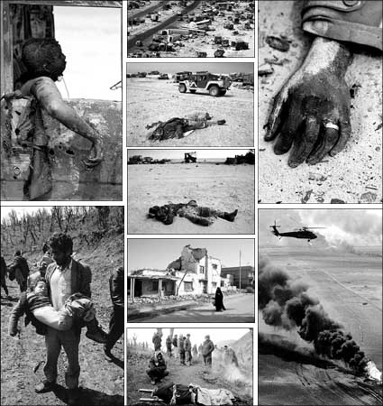 وجاء في بيان لمصدر رسمي ان «المسؤولين الامريكيين أعلنوا ان العراق أضرم النار في سبع آبار للنفط، وفي الواقع انها حفر مليئة بالنفط أضرمت النار فيها من أ.........