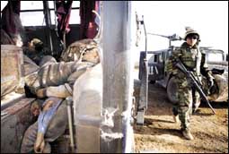 على الرغم من مرور اسبوع كامل على بدء الحرب على العراق فان القوات الامريكية والبريطانية فشلت في السيطرة الكاملة على أي مدينة عراقية واندلعت أشرس معركة برية منذ بداية الحرب على مشارف مدينة النجف مساء الثلاثاء الماضي وأسفر الاشتباك عن استشهاد 65 عراقياً تناثرت جثثهم على مشارف مدينة النجف.