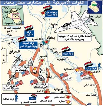 * بغداد جنوب العراق قاعدة السيلية الوكالات: مع دخول الحرب أسبوعها الثالث باتت معركة بغداد على وشك الوقوع، وعزا مراقبون عسكريون ومراسلون صحفيون غياب قوات الحرس الجمهوري......