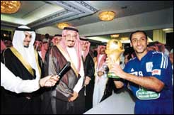 يوماً بعد يوم يشهد ابناء هذا الوطن صورة جديدة من صور التلاحم والترابط بين شبابه وقيادته حيث كانت ليلة الاربعاء صورة حية مترجمة حقيقية لإحدى صورها.. والرياضيون يعيشون عرسهم الأول هذا الموسم في امسية كروية ذهبية توج فيها امير الرياض على درة الملاعب استاد الملك فهد الدولي بالرياض نجوم الهلال بكأس سمو ولي العهد بعد فوزه في النهائي على منافسه فريق الاهلي بعد لقاء قدم فيه ابناء الزعيم والقلعة لوحة فنية وابداعية طرزت فيها كل معاني وفنون عالم المجنونة.وإن لم تشهد في دقائقها التسعين سوى هدف يتيم سجل بقدم النجم الموهوب محمد الشلهوب الا ان دقائق اللقاء كانت حافلة بالندية والإثارة والفرص المهدرة التي كانت غالبيتها لمصلحة الفريق الفائز الذي توج تلك الأفضلية بهدفه الوحيد.ولكن كان لقاء ممتعاً بكل ما تحمله هذه الكلمة من معنى ليكون تتويجاً لأفضليتهما المطلقة على اقرانهما من الاندية الاخرى وآخرهما الاتحاد والنصر. ختام ناجح وليلة لن ينساها الهلاليون والاهلاويون معا وإن كانت الفرحة الكبرى في النهاية قد طوقت باللون الازرق لحصول الزعيم على اللقب الا انها ستبقى في تاريخ الفريقين مسجلة بأحرف من ذهب.فهما الأفضل وهما الاجدر لينالا شرف اللعب في نهائي اهم بطولات الموسم بعد كأس دوري خادم الحرمين الذي لا يزال ينتظر الفائز به بعد ان خطف الموج الازرق الهادر اللقب الأول.
