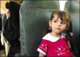 أحد المظاهر القليلة لعودة الحياة لطبيعتها في العراق استئناف رحلات القطار بين بغداد والبصرة، والصغيرة في الصورة تترقب باهتمام الانطلاقة الجديدة.