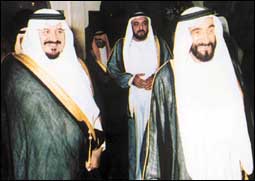 سمو الشيخ زايد وسمو الأمير سلطان ويظهر بينهما سمو ولي عهد أبوظبي الشيخ خليفة بن زايد