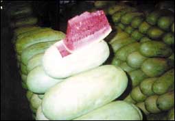 وقد قامت «الجزيرة» بزيارة الى سوق الحبحب والذي قامت بتجهيزه بلدية المحافظة لبيع الحبحب الذي بدأ يفد الى السوق بما لا يقل الآن عن 500 سيارة يومياً والذي من المتوقع ان يتجاوز ذلك بكثير خلال الايام القليلة المقبلة ورغم ان هذه هي البوادر الأولى لطرح الانتاج الا ان الاسعار مناسبة حيث يصل سعر السيارة في بداية هذا الموسم ما بين 1200 إلى 2000 ريال ويتم تسويق هذا الانتاج في مناطق ومحافظات مملكتنا الغالية وإلى دول الخليج.