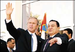 اجتمع الرئيس الأمريكي جورج بوش والرئيس المصري حسني مبارك في منتجع شرم الشيخ المصري قبل قمة عربية أمريكية لمناقشة سبل انهاء الصراع الفلسطيني الإسرائيلي.........