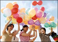 صينيات يعربن عن فرحتهن بقرار منظمة الصحة العالمية رفع حظر السفر لبلادهن. وكان قد فرض هذا الحظر عند انتشار مرض «السارس»، وقد تعهدت الصين بالابقاء على ح.........