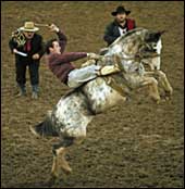 أرجنتيني على ظهر فرس جامح خلال المهرجان السنوي للمزارع في الأرجنتين الذي يهدف إلى الارتقاء بالعمل الزراعي في البلاد.