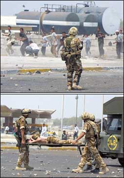 أصيب ستة عراقيين بينهم طفل برصاص الجنود البريطانيين خلال مواجهات مع متظاهرين في البصرة اثر هجوم على آلية عسكرية اصيب فيه ثلاثة بريطانيين.