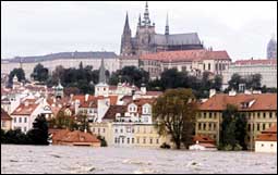 مشهد عام لفيضانات نهر فلاتفا وسط العاصمة التشيكية براغ.. وقد أعلنت الحكومة الطوارىء لمواجهة الفيضانات التي أغرقت البلد بشكل عام.