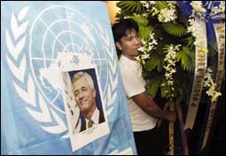 أصدرت الأمم المتحدة أول قائمة للقتلى الذين سقطوا في تفجير مقر المنظمة الدولية في العاصمة العراقية، وبدأت القائمة بسبعة أسماء تم ابلاغ أسرهم بوفاتهم.