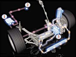 1- وحدة التحكم الإلكتروني وهي التي تحدد مدى تدخل وحدة تخفيف حدة الانعطاف أو زيادتها.