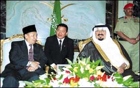 استقبل خادم الحرمين الشريفين الملك فهد بن عبدالعزيز آل سعود في مكتبه بقصرالسلام أمس دولة نائب رئيسة جمهورية إندونيسيا الدكتور حمزة هاس والوفد المرافق.........