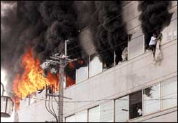 وأظهرت لقطات أذاعها التلفزيون قطعاً من الزجاج وأوراقاً تتطاير في الهواء بعد الانفجار الذي هز مكاتب الدور الثالث في شركة توريد في المدينة الواقعة على ب.........