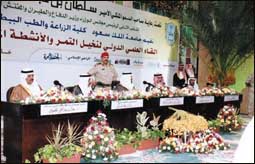 اختتمت مساء أمس الأول الخميس جلسات اللقاء العلمي الدولي لنخيل التمر الذي تنظمه جامعة الملك سعود فرع القصيم في مركز الملك خالد الحضاري بمدينة بريدة والذي شرف حفل افتتاحه صاحب السمو الملكي الأمير سلطان بن عبدالعزيز النائب الثاني لرئيس مجلس الوزراء ووزير الدفاع والطيران والمفتش العام، وقد بدأت الجلسة الختامية بكلمة للدكتور عبدالرحمن الحميد عميد كلية الزراعة والطب البيطري بالقصيم ومقرر اللقاء شكر فيها خادم الحرمين الشريفين وولي عهده الأمين على الموافقة السامية لإقامة هذا اللقاء وتخصيص خادم الحرمين حفظه الله طائرة خاصة لنقل المشاركين لأداء العمرة وزيارة المدينة المنورة.