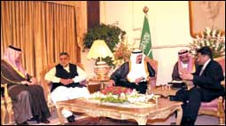 عقد صاحب السمو الملكي الأمير عبدالله بن عبدالعزيز وفخامة الرئيس برويز مشرف اجتماعا جرى خلاله بحث مجمل الأحداث على الساحتين الإسلامية والدولية وفي مقدم.........