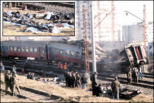 دمر انفجار عربة في قطار ركاب قرب الشيشان أمس قبل يومين من إجراء انتخابات برلمانية قومية مما أدى إلى سقوط 40 قتيلاً وتشتبه السلطات في أن الهجوم انتحاري.........