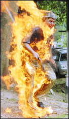 أضرم إيراني النار في جسده امس الثلاثاء أمام مركز للاجئين تابع للأمم المتحدة في ماليزيا في محاولة يائسة لطلب مساعدة بعد أن قال انه تعرض لعملية نصب.
