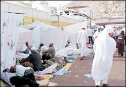 تحولت الخطوط الرئيسية بمشعر منى إلى كتلة بشرية من الحجاج الذين افترشوا الشوارع حتى عربات القمامة لم تؤثر فيهم وجلسوا بجوارها أو فوقها في منظر مزعج للذ.........