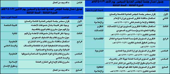 هذا وسوف يدرس المجلس موضوعات جديدة إضافة إلى مواصلة دراسة بعض الموضوعات السابقة كما يوضح الجدول: