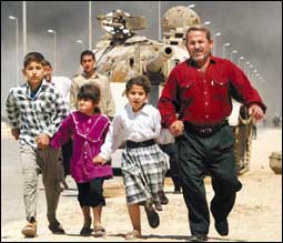في الليلة الأولى لقصف الامريكيين لبغداد قفز شاب مذعور في الثالثة والعشرين إلى سيارة أجرة للانضمام إلى عائلته في بيت عمه في الجانب الآخر من المدينة.