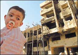 مرقت طائرة فوق رأسه وحدث انفجار هائل أعقبه دخان وصيحات رعب. سقطت قنبلة على مبني مجاور وفقد سمير إحدى عينيه وذراعه. وشاهد الناس في مختلف أرجاء العالم ص.........