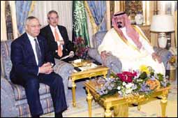 بحث صاحب السمو الملكي الأمير عبدالله بن عبدالعزيز ولي العهد ونائب رئيس مجلس الوزراء ورئيس الحرس الوطني مع وزير خارجية أمريكا كولن باول الذي قام بزيارة.........