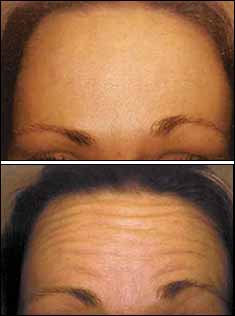 هي اجراء غير جراحي وبسيط يؤدي إلى استرخاء العضلات المسببة للتجاعيد لفترة قد تدوم لغاية 4 اشهر وتشير نتائج احدى الدراسات ان حوالي 90% من الرجال والنساء الذين استخدموه افادوا بوجود تحسن متوسط أو اكثر في التجاعيد.