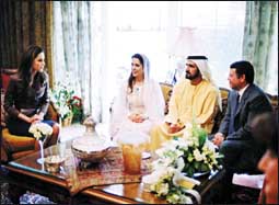 «الفارس» ولي عهد دبي يعقد قرانه على «الفارسة» الأميرة هيا الحسين الشيخ محمد وعقيلته الأميرة هيا يتوسطان عاهل الأردن وعقيلته رانيا