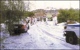 تعرض مركز جهام التابع لمحافظة الدوادمي لموجة أمطار غزيرة مصحوبة بالبرد ظهر يوم الجمعة الماضي ويوم أمس الأول سال على اثرها وادي جهام.